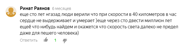В интернете полно хороших статей и видео, объясняющих почему скорость света максимальна и ее никогда не удастся превысить. Но как всегда, на все логические аргументы найдутся свои диванные эксперты. Самый популярный довод, наверное, следующий: Такие 'эксперты' не понимают, что законы природы - это не какие-то эмпирические законы типа закона Мура или технический прогресс. При появлении новых теорий законы природы никогда не отменяются. Может лишь уточняться или ограничиваться область их применения. Действительно, так было с Аристотелевской механикой, которую сменила Ньютоновская механика. Так было и с самой Ньютоновской механикой, которую сменила квантовая механика. Но разве мы теперь нигде не используем формулу F=ma? Почему же эту 'неверную' теорию в школах все еще изучают? Но принцип относительности Эйнштейна, и его следствие в виде невозможности превышения скорости света, скорее ближе к первому закону термодинамики, и его следствию в виде невозможности создать вечный двигатель.