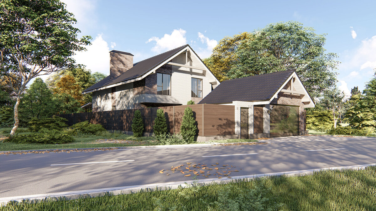 Часто к нам обращаются заказчики с просьбой разработать проект именно для длинного участка с узким фасадом. И несмотря на этот фактор пожелания весьма нескромные, а бюджет ограничен. Поместить их все в одном этаже очень не просто и дабы не получился вагон со входом сбоку, предлагаем возводить двухэтажный.