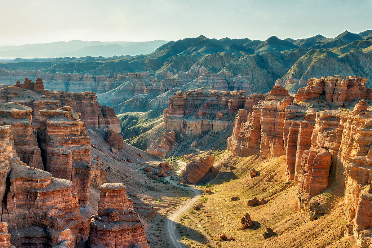 Чарынский каньон уступает американской визитной карточке размерами, но не впечатлением, которое производит. Высокие глиняные скалы тянутся над долиной реки Чарын на 154 километра, а высота колеблется от 150 до 300 метров. Миллионы лет назад здесь было большое озеро, которое высохло, а на его месте появилась горная река. Мощный поток воды вымыл породу вглубь и в ширину, а ветер обтесал мягкие известняковые скалы. Обязательно дойдите до Долины замков, где скалы под влиянием природы причудливо сформировались в подобие башен.