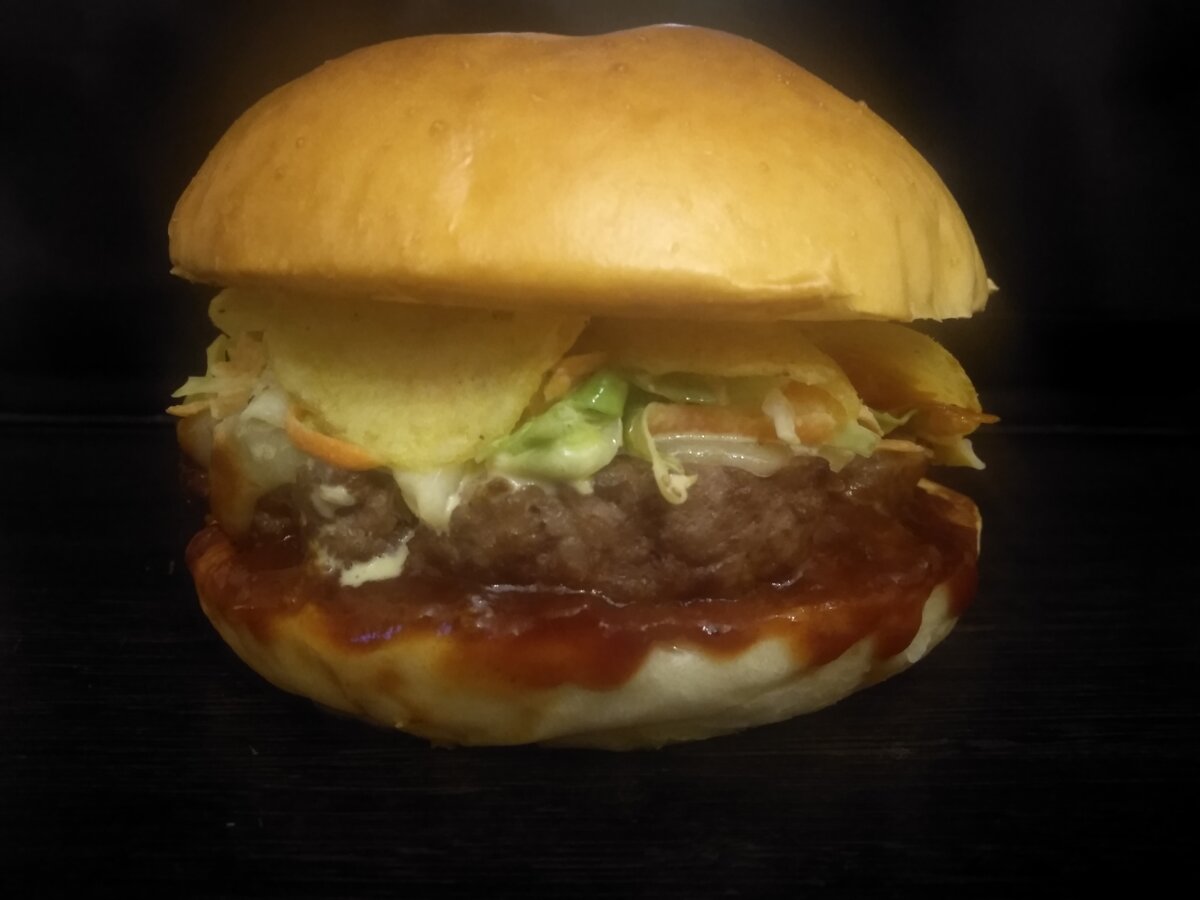 Сочетание салата "Коулслоу", сладко-острого барбекю и хрустящих картофельных чипсов. На 3 бургера 3 булочки для бургеров Котлеты: 500 гр. говяжьего фарша 80% 20% Коулслоу: 225 гр. капусты 75 гр. моркови 80 гр. майонеза 1 ст.л. дижонской горчицы 1 ст.л. яблочного уксуса 1,5 ст.л. сахара 0,5 ч.л. соли 0,5 ч.л. лукового порошка 1 ч.л. семян сельдерея 125 гр. чеддера (желательно острого) соус барбекю картофельные чипсы Начнем с коулслоу. Салату надо настояться в холодильнике не менее 2-3 часов. Капусту шинкуем, морковь трем на терке. Добавляем все специи. Затем майонез, хорошо перемешиваем и убираем в холодильник. Можно сделать так: майонез и специи смешать отдельно и заправить салат. После 2-3 часов, достаем из холодильника и сливаем лишнюю жидкость. Салат готов. Формируем котлеты. Булочки разрезаем, обжариваем. Сыр режем по числу котлет. На той же сковороде жарим котлеты. Когда котлеты готовы, на каждую выкладываем по куску сыра и ждем пока расплавится. Все, можно собирать. На ни