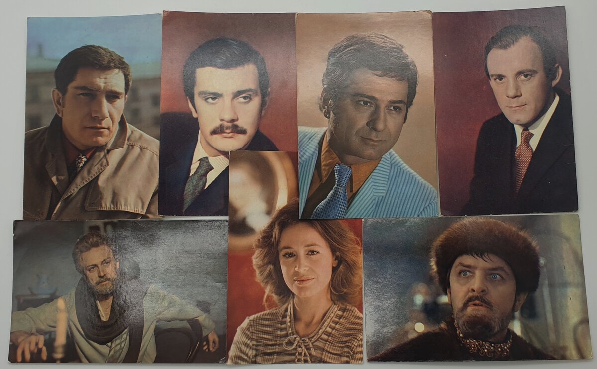 Первые открытки с артистами появились в Российской Империи, задолго до революции. В основном это были артисты театра и балета, попасть на выступления которых не могли широкие слои населения. Все изменилось с появлением СССР. Театры, опера и балет стали доступны многим, широкое распространение получил и кинематограф. Рабочие и крестьяне посещали кино, спектакли, у них появлялись свои кумиры. Выпускались календари, открытки, фотокарточки с любимыми артистами. Большинству моих читателей знакомы открытки 60 – 80 годов издания Бюро пропаганды советского киноискусства. Открытки были коллекционными и не предполагали отправку без конверта. Карточки выходили достаточно большими тиражами и доходили до 500000 экземпляров. Помимо портретов, можно встретить не форматные карточки, а так же кадры из фильмов и спектаклей. На обратной стороне открытки печаталось краткая биография и список работ по годам. Стоимость карточек варьировалась от 5 до 8 копеек за штуку. Встречаются издания разных типограф