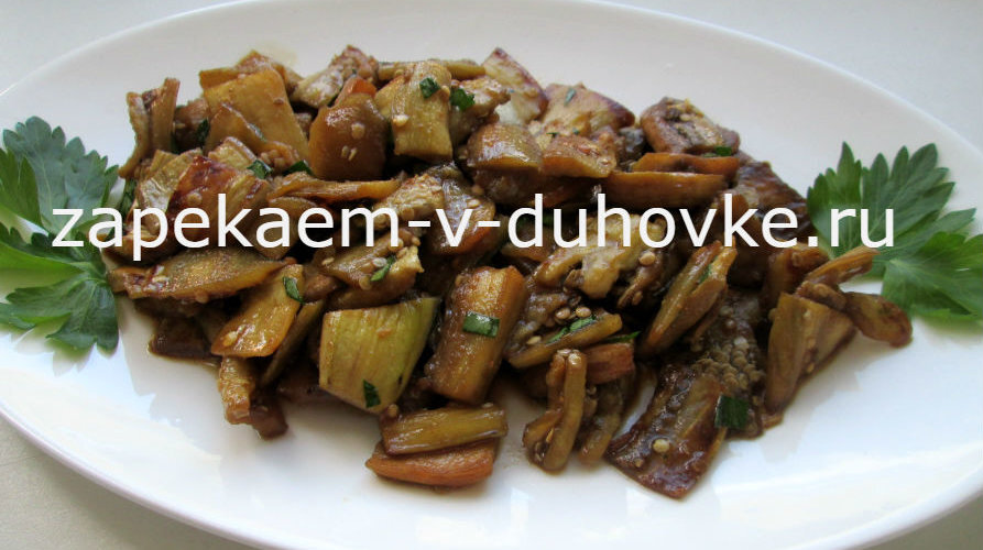 Сложно представить, что баклажаны за очень короткое время могут стать маринованными? И все же это возможно. Знакомьтесь — вот они маринованные в имбирно- бальзамическом маринаде. Сказать, что они вкусные — ничего не сказать! Баклажаны получаются просто изумительными: пряные в меру, с имбирно-бальзамической и кунжутной ноткой. А если вам удастся раздобыть пару листочков настурции, непременно положите их в маринад. Это добавит готовому блюду еще большей пикантности. Если настурции вблизи не нашлось, заменить ее можно листьями кинзы или петрушки. А добавив одну столовую ложку кунжутного масла, вы сделаете блюдо еще восхитительнее. Без него, конечно, тоже будет вкусно, но такое масло вносит еще больше восточного колорита. Понадобятся следующие ингредиенты: Очищаем баклажаны от кожуры — овощным ножом это сделать удобнее. Нарезаем их сначала продолговатыми пластины, толщиной 0,5 см. Затем режем на мелкие квадраты или прямоугольники (2х2,5 см). Сковороду смазываем растительным масл