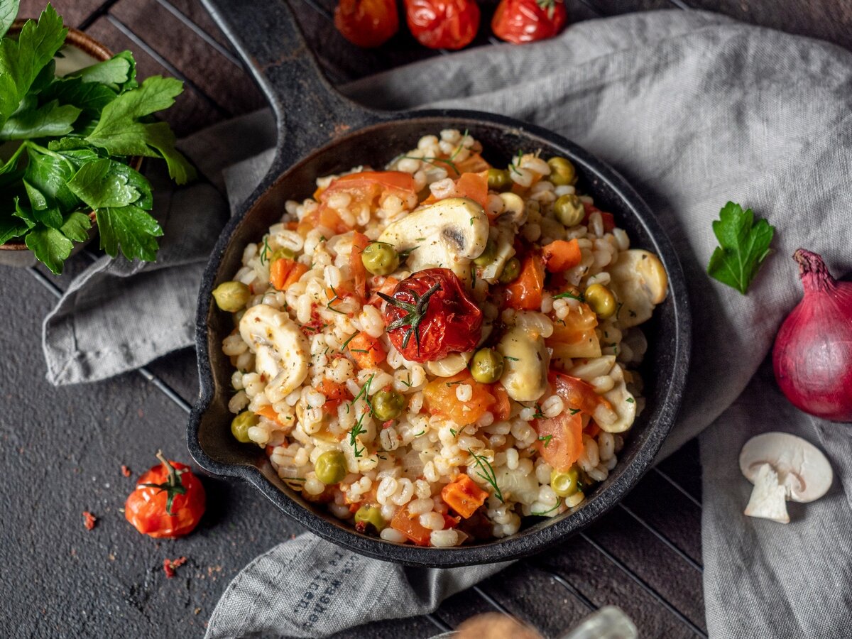 Перловую крупу давно уже используют, как альтернативу рису, при приготовлении ризотто. Заменить рис в паэлье – отличный вариант.