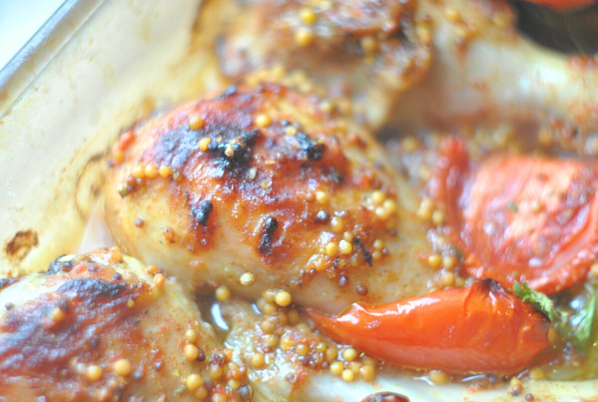 Больше всего в нашей семье любят куриное мясо. Поэтому способов приготовить курочку я знаю великое множество. Чаще всего я вечера мариную мясо, а утром уже делают котлетки,отбивные, рулеты. Этот рецепт мне безумно нравится своей простотой, быстротой приготовления и удивительно ароматной и вкусной корочкой! Чаще всего подаю на гарнир пюре или салат. Понадобится: Готовим: Я с вечера мариную курицу в следующей смеси: мед,соевый,горчица,масло,перец, паприка,измельченный чеснок. Тщательно перемешиваю куриные голени в маринаде и оставляю в холодильнике до утра. Утром голени выкладываю в форму,смазанную маслом. Между куриными ножками выкладываю петрушку и помидоры.Поливаю курицу маринадом- пару ложек оставляю на потом. Ставлю в духовку и выпекаю при 180 градусах 30-40 минут.Затем поливаю ножки оставшимся маринадом и ставим в духовку еще на 10 минут- мед заглазирует голени и появится красивая корочка. Курочка,приготовленная таким способом,всегда получается сочной, с хрустящей и очень вк