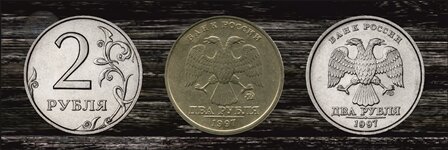 Рассмотрим самые обычные 2 рубля. Чекан этих монет начат в 1997 году огромными тиражами на Московском и Санкт-Петербургском монетных дворах и продолжается до сих пор. Вес монет данного номинала 5,1 грамм, диаметром 23 миллиметра. Гурт рубчатый прерывистый, чередуются участки с рифлением и гладкие участки. Толщина монеты 1,8 миллиметра. Следует отметить, что Московский монетный двор не занимался чеканом монет номиналом 2 рубля в 2000, 2003-2005 годах. Интересными же двух рублевыми монетами ММД являются: - 1999 год. Цена данной может достигать 400 рублей, при этом ее пока еще реально встретить в сдаче и современных копилках; - 2 рубля 2001 года являются более редкими и стоят уже до 10 тысяч рублей; - монеты данного номинала, выпущенные в 2002 году, так же стоят достаточно серьезно и могут достигать в цене 5 000 рублей. Но все же самыми востребованными будут некоторые из монет выпущенные на Санкт-Петербургском монетном дворе. А именно: - 2 рубля выпущенные в 2001 году. Они являются ре