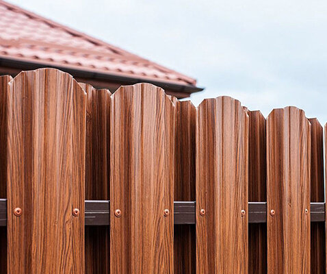 Одним из преимуществ металлоштакетника является легкий монтаж, не требующий профессиональных навыков и специальных инструментов. Поэтому если вы хотите самостоятельно установить забор из этого материала, предлагаем ознакомиться с нашей инструкцией, которая подскажет, как сделать забор из евроштакетника (металлического штакетника) своими руками. Монтаж забора из металлического штакетника: пошаговая инструкция Для монтажа забора из металлоштакетника вам понадобятся следующие материалы: И небольшой набор инструментов: Подготовка территории Предварительно необходимо очистить периметр участка от остатков прежнего забора (если он был), скосить траву, убрать неровности грунта. Разметка территории По периметру монтажа забора вбейте колышки, натяните веревку, показывающую прямую линию, по которой должен быть установлен забор. Затем отметьте места будущих столбов колышками, маяками. Расстояние должно соответствовать длине закупленных лаг с учетом ширины столба и крепления. Установка столбов