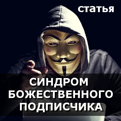 Привет, друзья. Сегодня мы с Вами поговорим о одном интересном психиатрическом явлении. Появилось оно совсем недавно, вместе с появлением социальных сетей и возможностью комментировать посты, статьи и видеоролики. Сейчас очень модно любое явление в психиатрии и психологии называть «синдромом», поэтому я решил назвать это явление «синдромом божественного подписчика». Оно довольно сильно отличается от других «болячек», уже известных психиатрии. Как и все психопатологии, оно представляет из себя адаптационную ригидность. Это когда человек решает любые проблемы одним и тем же образом, то есть застревает на каком-то одном способе адаптации, который и использует для решения любых проблем и ситуаций (к примеру, убегает от любых проблем, будь это долг, разговор с начальством, необходимость договориться с неприятным человеком и тд).