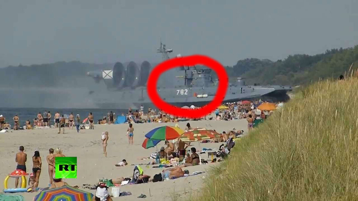 Был обычный тёплый день, в который все семьи отдыхали на пляже в Калининградской области, но в один момент начали возникать посторонние шумы, гул всё увеличивался, да ешё и брызги высотою в целый дом. Но большинство отдыхающих отреагировали очень спокойно, будто видят такое каждый день. Оказывается, это обычное дело - пляж находится на территории военного полигона. И подумаешь, "Зубр" - самый большой в мире десантный корабль на воздушной подушке, стоит заметить, что периодически здесь ездит и бронетехника. Всё это происходило 18-го августа 2013-го года около поселка Мечникова. Экипаж данного десантного корабля тренировал тактическое занятие по погрузке и выгрузке личного состава на побережье. Сама территория является частью морского десантного полигона, поэтому все отдыхающие находились там "на свой страх и риск". Теперь немного о самом корабле: Суммарная мощность всех двигателей "Зубра" 50 000 л/с, но к сожалению за такие скорости и мощность придётся очень сильно потратиться. "З