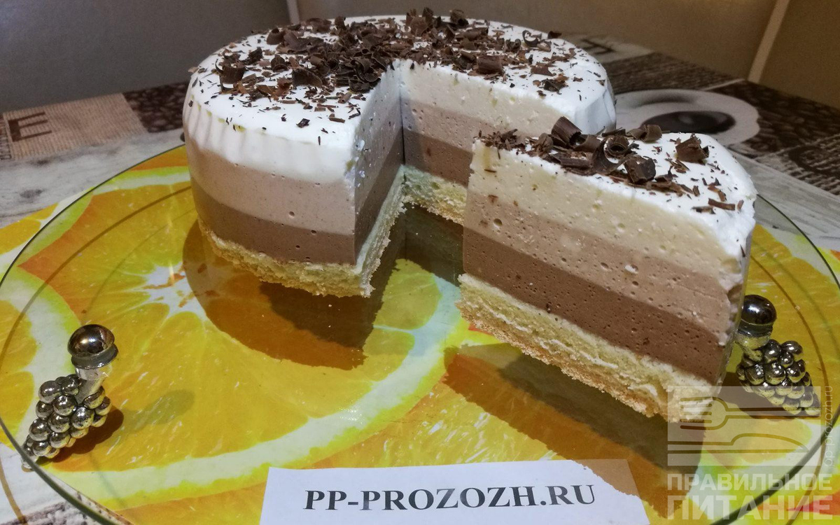 Для любителей десертов предлагаю рецепт полезного торта. Он точно Вам понравится простотой приготовления, праздничным видом и, что особенно важно, не нанесет вреда здоровью и фигуре. А если Вы приготовите его к приходу гостей — готовьтесь получать восхищенные отзывы! Порций: 8 Ингредиенты: Калорийность и БЖУ на 100 грамм: ▶ Калории: 121.19 ккал ▶ Белки: 14.28 г ▶ Жиры: 1.95 г ▶ Углеводы: 11.51 г Время приготовления — 2 час. 30 мин. Как приготовить 1. Подготовьте все ингредиенты. Чтобы десерт получился настоящим тортом слои мусса соедините с ПП бисквитом. Я приготовила его заранее по рецепту (взяла половину ингредиентов).