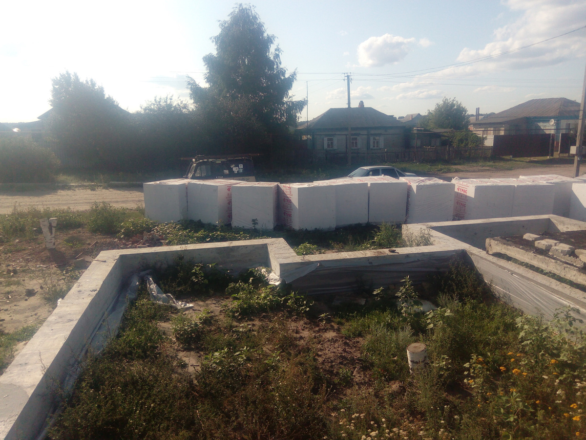 Привет товарищи читатели, мастера и любители!Вот и началась моя стройка .Проект задуманного я выкладывал сюда еще зимой,ссылка- www.drive2.ru/c/527622096…age=1#a529321116481618604 Как проходила заливка, копка фундамента показать сейчас не могу, т.к файлы утеряны.Опишу в двух словах.Дом 13х8 в среднем. Имеем периметр 48м/п х 40см шириной и 120-130 глубиной.На заливку фундамента+цоколь (70см средняя) потрачено около 80 000р. :копал половину в ручную сам заднюю сторону копал трактор, она прямая.-песок 25м3 =5000р-арматура 500 м х25=12500-битый кирпич 24м3 (4 камаза)=16500-цемент в мешках 140 х260 =36 000+около 4000 помошникам, правда которые помогали всего дня 4 с переменным успехом, в итоге залил в основном в одно жало, вся работа по фундаменту с монтажем опалубки заняла около месяца.на опалубку было куплено 2 м3 доски 150х25 , при ручной заливке ее более чем достаточно.(примечание. ни вкоем случае опалубка из дюймовки не должна использоваться под заливку из авто миксера!)на доску "полуо
