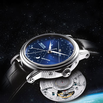 Часы, минуты, фазы Луны. Корпус выполнен из нержавеющей стали.