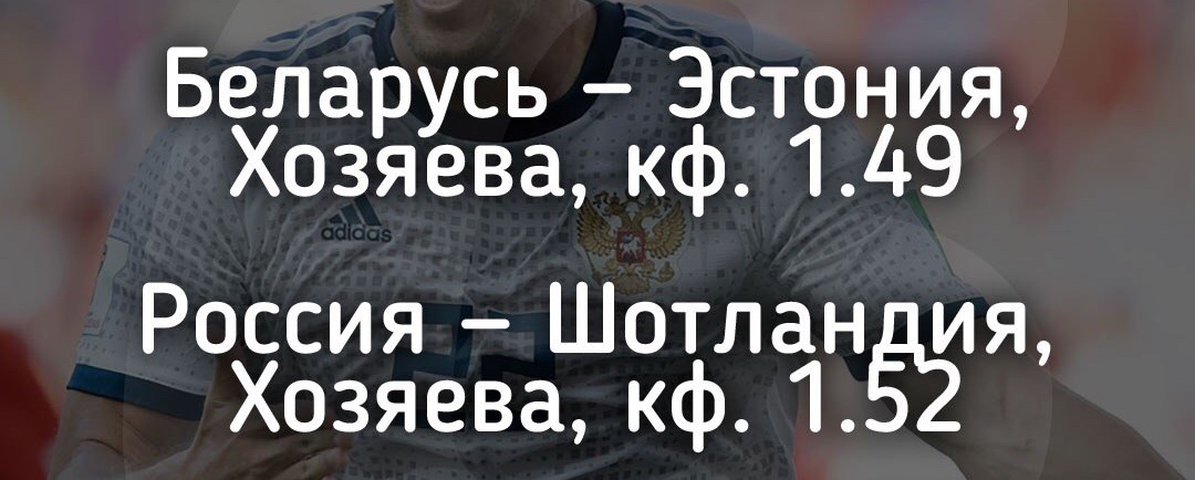 1. Оба коллектива уже не имеют шансов пройти отбор. В последней очной встрече в Эстонии победили белорусы. Хозяева в последних домашних матчах проигрывали лишь опытным коллективам — Испании, Швеции, Голландии, Германии и Северной Ирландии. Эстония явно слабее всех этих сборных и наверняка белорусы хотят порадовать своих болельщиков ещё одной победой. 2. Сборная Черчесова выдала серию из 5 побед подряд и практически гарантировала себе место на Евро20. Шотландцы смогли повести в счёте в домашнем матче, но россияне переломили ход встречи и добились волевой победы (2:1). Полные Лужники погонят своих любимцев продлить победную серию до 6 матчей.