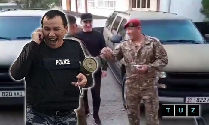 Опровергнуть это видео Министерству внутренних дел будет уже просто невозможно. Камера зафиксировала, как Эркин Мамбеталиев вручает ключи от двух джипов сотруднику милиции в форме, как все присутствующие фотографируются, жмут друг другу руки. Девушка в форме "выставляет" композицию, кто-то снимает на телефон, рядом в строю стоят, видимо, рядовые сотрудники. Мужчина в форме приглашает Мамбеталиева выпить чаю, тот отказывается. Но все, конечно, рады. Похоже это на оформление штрафа за тонировку и возвращение машин владельцу? Позор! Министру Джунушалиеву, который не нашел в себе смелости, как глава ведомства, признать - да, мы приняли в дар машины у бывшего уголовника, человека, который подозревался в убийстве нашего же коллеги. Слово за главой правительства. Есть ли хотя бы у премьер-министра какие-то принципы и понятие о чести, достоинстве и репутации такого ведомства, как МВД? Решится ли он отправить в отставку завравшегося министра Кашкара Джунушалиева? И главный вопр