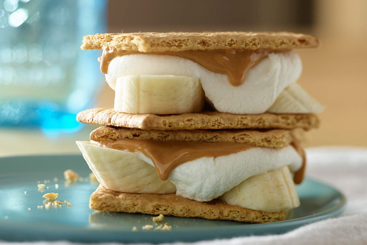 Одна из самых популярных сладостей в Америке набирает обороты и в России :) Все дети, да и некоторые взрослые, невероятные сластены, но есть много сладкого не очень полезно, особенно в раннем возрасте. Поэтому обратите внимание на этот десерт :) Он и сладкий, и не такой вредный, как большинство современных сладостей! А самое главное, такой сладкий перекус сможет приготовить даже ребенок! ИНГРЕДИЕНТЫ ПРИГОТОВЛЕНИЕ Равномерно распределите сливочное арахисовое масло SKIPPY® арахисовую пасту на 2 крекера. На посуду для микроволновой печи разложите крекеры, сверху на них выложите зефир. Поставьте в микроволновку на 15 секунд (или до тех пор, пока зефир не растает). После разложите на каждый крекер кусочки банана и соедините в один большой сэндвич!:) Готово! Ваш супер-перекус готов к подаче и моментальному поеданию :) Приятного аппетита!:)