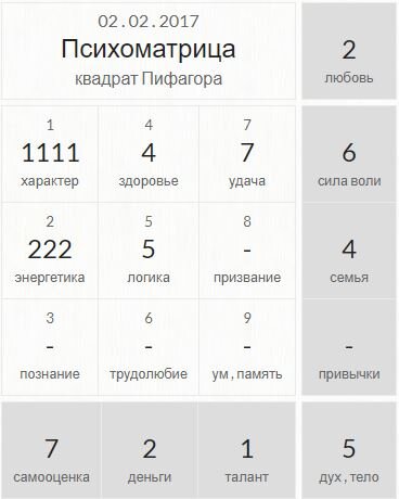 Цифровой анализ позволяет определить характер человека, безошибочно распознать и развить его склонности и скрытые способности. Это возможность узнать о своих жизненных задачах, целях, будущем и процессах, управляющих Вашей карьерой, личной жизнью и богатством. Нумерология поможет Вам перейти на светлую полосу удач и везения. Расчет нумерологической карты судьбы Нумерологическая карта судьбы даёт наиболее полное представление о человеке. В неё входит анализ по всем числам, полученным из даты рождения и полного имени человека, а также анализ жизненных циклов, чисел достижений и проблем. Нумерологическая карта судьбы описывает ваш жизненный путь и знакомит с некоторыми особенностями и преградами. Нумерологическая карта судьбы описывает ваш жизненный путь и знакомит с некоторыми особенностями и преградами. Нумерологическая карта судьбы необходима тем людям, кто стремиться к саморазвитию и самосовершенствованию. Бесплатный нумерологический онлайн расчет быстро поможет опре