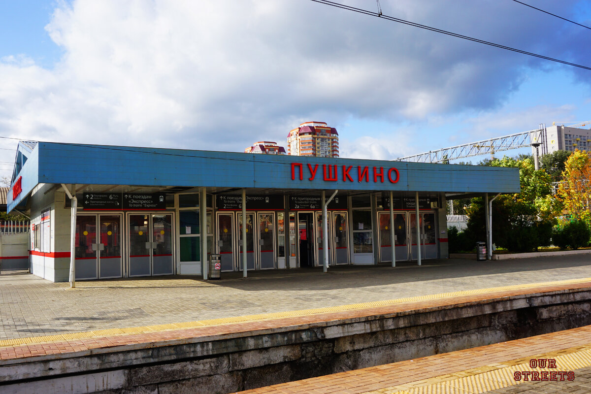 Прибыли в город Пушкино, что в Московской области. Не путать с городом Пушкин, который на данный момент является частью Санкт-Петербурга. Город расположен севернее Москвы в направлении на Ярославль, население на 2019 г. 106 836 чел. На фото ниже - основное здание ж/д вокзала г. Пушкино. Старинное здание начала 20-го века, в наше время несколько раз проводился ремонт фасада, до этого был салатовый цвет. Также на вокзале размещены две памятные доски - одна Маяковскому, другая 43-й бригаде железнодорожных войск. Интересной архитектуры водонапорная башня, обычно в многих городах и на небольших станциях подобные сооружения довольно однотипны, это стандартное строение из красного кирпича. Но тут башня совсем не похожая на другие. Возможно её строили как и вокзал в дореволюционное время. Бывшее общежитие, здание серии 164-80-3 , такие строили в 1970-80е годы. Пошли через дворы в сторону музея Маяковского. Далее наш путь лежит через сквер , сделанный к 70-летнему юбилею Победы в Великой Отеч