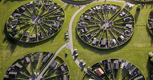 Недалеко от Копенгагена (Дания) находится удивительная достопри-мечательность - Brondby Garden City (Город- сад). Дома в этом местечке расположены в виде кругов, окруженных зелеными садами. Атмосфера настолько завораживающая, что сложно подобрать слова, чтобы описать её. Идея "Города- сада" была одобрена в 1964 году. Цель- повысить социаль-ное взаимодействие между людьми. С помощью спутников и аэрофотосъемки были сделаны впечатляющие снимки, чтобы мы смогли увидеть эту красоту во всей красе. Прокрутите вниз, чтобы увидеть этот необычный город. Хотели бы вы жить в таком?