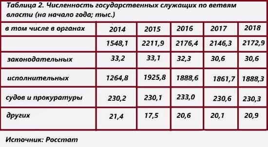 А теперь сравним с советским периодом истории, причем для объективности возьмем "самый жирный" год, когда страна просто "задыхалась" от засилья чинуш. Думаю некорректно будет сравнивать Россию и РСФСР, так как был еще и союзный аппарат, поэтому данные Советского Союза будем корректировать с учетом разницы численности населения: