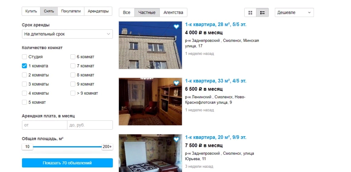 2. Сайт из рук в руки предлагает нам большой выбор квартир с ценовым диапазоном от 6000 рублей, как бы странно это не звучало.