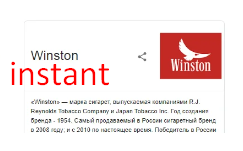 Порой английские слова и услышанные и прочитанные у нас не вызывают никаких ассоциаций. И тогда мы начинаем эти слова просто зубрить. Вот как, например, Вы станете запоминать слово instant [ʹɪnstənt] Мгновение, момент, немедленный, растворимый, как только, мгновенный Начинается оно наподобие инстаграм. Можно и на этом остановиться. Однако неподходящее ударение будет сбивать нас. Тогда можно попробовать поменять ударение. Ведь иногда можно услышать расхожее Инста с ударением на "И". Возможно, что такой подход уже ближе к истине, и Вы, пожалуй, это слово уже и запомнили. Но предлагаем Вам другой вариант. Для этого в поисковую строку google не написать нужное слово, а произнести вслух. Если слово сказано правильно, то оно и выдаст Это нам ничего не даёт. А вот если добавить к началу одну букву, то число вариантов значительно увеличивается. Буква "b" не дала никакого результата. А вот буква "W" даёт этот результат Так это же здорово! Как раз и подходит, чтобы придумать с этим брэн