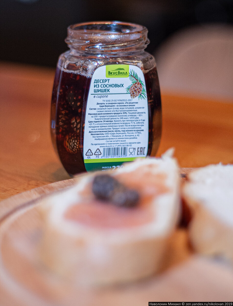 Сегодня совершенно случайно купили варенье из шишек (как утверждает продавец - десерт из сосновых шишек). Много раз о нём слышал, видел, но не пробовал. Понравилось. Такое ощущение, что клубничное варенье ешь в очень густом и ароматном сосновом лесу. А вы пробовали когда-нибудь такое варенье? Подписывайтесь, ставьте лайки, оставляйте комментарии. Репосты приветствуются. P.S. если вы живёте в Москве и хотите фотографий - обращайтесь. P.S.S. если хотите детских фотографий с прогулки и вы живёте в Москве - обращайтесь.