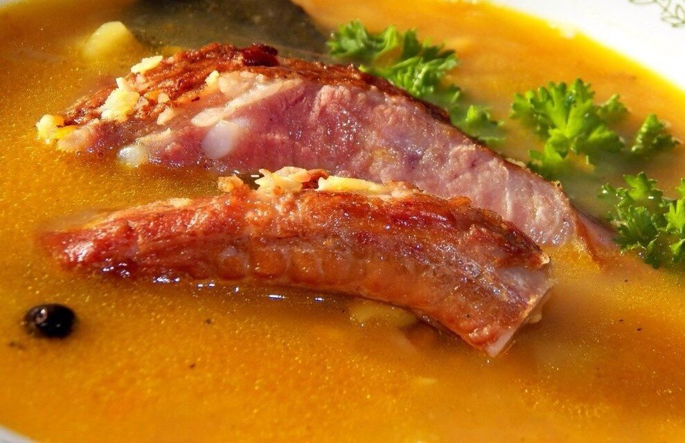 Вкусный и простой в приготовлении гороховый суп с копченостями