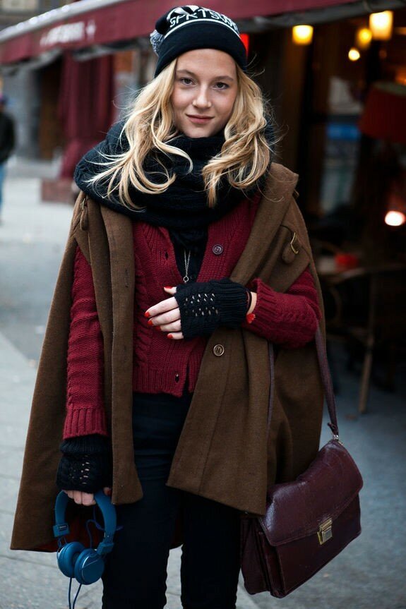 ● Осень Смотрите также: Самые модные модели дубленок средней длины на 2019 год Кейп согреет еще лучше, если под него надеть свитер с горлом и вязаный джемпер. Пальто-кимоно хорошо смотрится с вязаной накидкой, подпоясанной ремнем и белой
