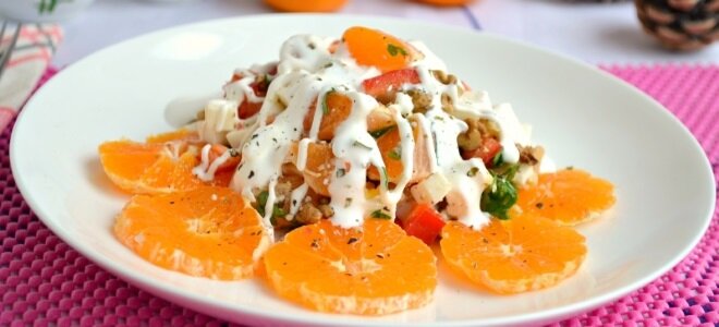 4. Апельсин и мандарины очищаем, удаляем белые прожилки и нарезаем кубиком.