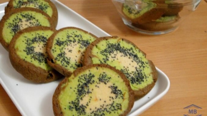Предлагаю взамен покупному печенью приготовить очень вкусное и ароматное печенье «Киви». От восторга просто ахнут и дети, и взрослые! Ингредиенты: 1 уп (180 грамм) сливочного масла, 120 грамм сахарной пудры, 1 крупное яйцо, 350 грамм муки, 2 чайные ложки какао-порошка, 1 чайная ложка мака, 2-3 капли зелёного пищевого красителя, 1 чайная ложка цедры лимона.