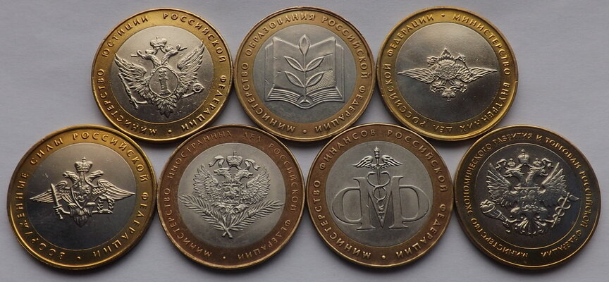 В 2002 году Банк России выпускает серию монет, посвященную 200-летию образования в России министерств.