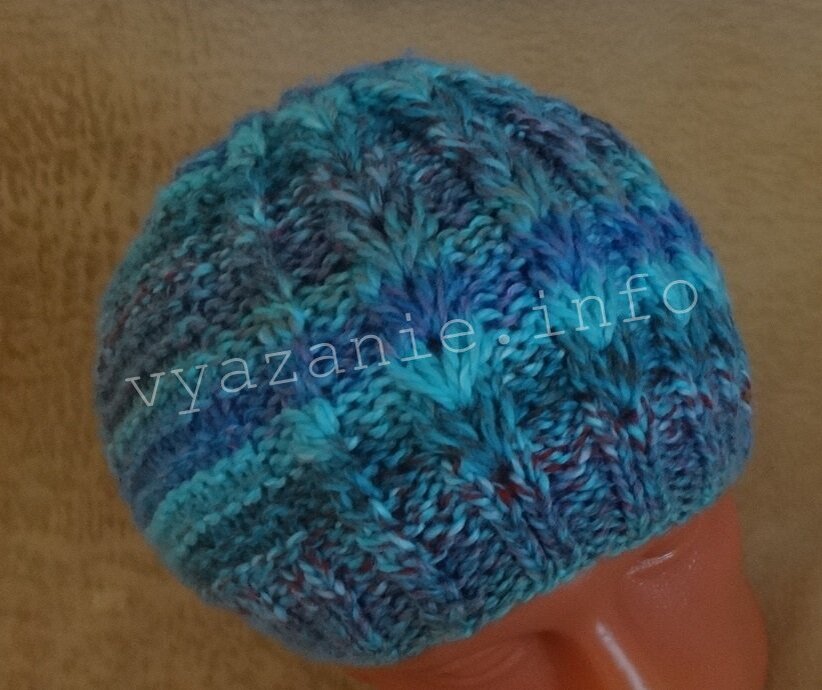 Размер этой шапки регулируется выбором толщины пряжи и номера спиц. Пряжу берите однотонную.