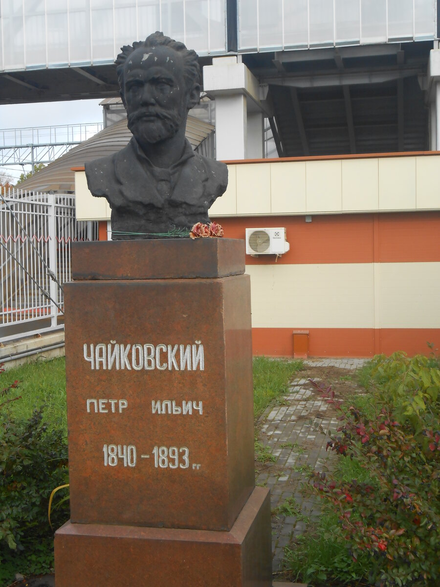 На вокзале (ж-д "Клин") нас встречает немного пошарпанный памятник П.И. Чайковскому и задаёт соответствующее "музыкальное" настроение...