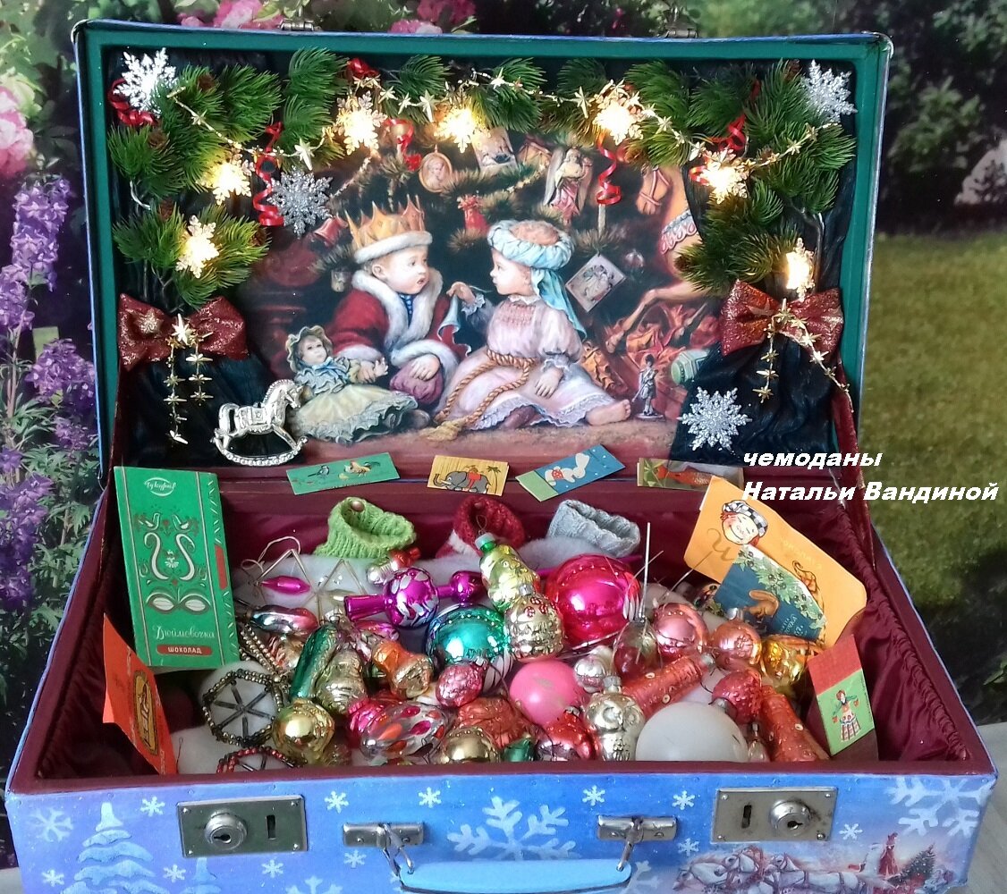 Новый год- это удивительный праздник! Ради него все и ждут студёную зиму, потому что он тёплый, семейный и очень душевный. А ещё самый нарядный и сказочный! Вот уже несколько лет подряд к Новому году я декорирую старые советские чемоданы для хранения ёлочных игрушек.