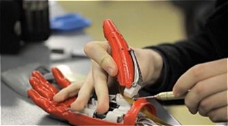 Протезы эти - гибкие и подвижные. Позволяют совершать ими привычные движения. Даже нитку в иглу можно вставить с его помощь.