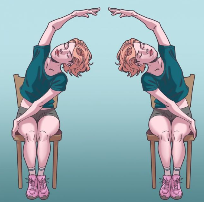 Все знают к чему приводит положение сидя целыми днями в офисе… …к зарплате :) и к болезням спины :( Как сделать так чтобы одно не мешало другому?! Вот лучшие упражнения, проверенные на собственном опыте: 1. Плечи вверх-вниз Сядьте прямо, руки свесьте по бокам. Выпрямите шею и спину. Подтягивайте плечи к ушам и резко опускайте их вниз. 2. Разворот туловища Сядьте прямо, выпрямите шею и спину. Руки положите на затылок. Поворачивайте туловище и шею в бок как можно дальше, за счёт спинных мышц, Пытайтесь увидеть стену позади вас. 3. Отклонение головой назад Облокотитесь на стул шеей и головой. Грудью подайте к потолку. Посидите в этом положении около 10 секунд. 4. Сгиб поясницы Положите живот на бедра, грудь на колени. Вытягивайте руки вперед, вниз и назад вверх собранные в замок в таком положении. 5. Наклоны в бок Сядьте прямо, выпрямите шею и спину, руки положите на колени. Сгибайте позвоночник влево и вправо. Затем подключите к упражнению шею. Упражнения занимают всего