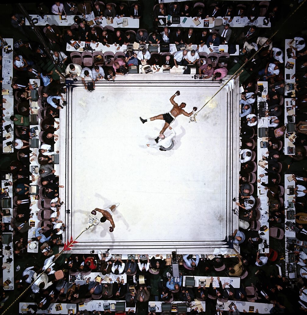 "Это, несомненно, лучшая фотография, которую я когда-либо делал" - изрек Нил Лейфер и был прав. Вообще, это золото, а не кадр. Во-первых, потому, что Али был "Величайшим", следовательно и фотографию вполне уместно назвать лучшей в истории. Во-вторых, снимок имел огромный успех после первой публикации и остается популярен по сей день. Ее автор, Нил Лейфер, был известным экспериментатором и новатором, всегда рисковал, уходил от стандартов фотографии, пытаясь сделать удачный кадр, и использовал незаурядную технику. Но, как правило, такой подход никогда его не подводили. Легендарный снимок был сделан в 1966 году во время невероятного сражения Мухаммеда Али против Кливленда Уильямса. Однако, как признается сам фотограф, вдохновение для выбранного им ракурса дала другая его работа - фотография, сделанная во время боя Али против Сонни Листона: "Самое важное в этой картине - это то, что она дала мне идею, что я еще более успешно использовал ее год спустя, когда я сфотографировал Кливленда У