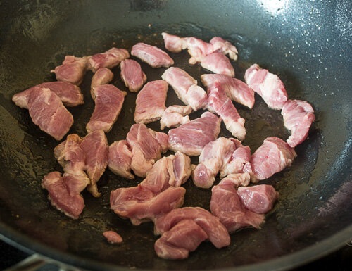 Ингредиенты на 6 порций: Основа свиная шея 1,2 килограмм луковица крупная 1 шт. чеснок 2 зубчик молотая паприка 1 ч.л. копченая молотая паприка 1 ч.л. соль по вкусу бульон 200 мл. шампиньоны 300 грамм