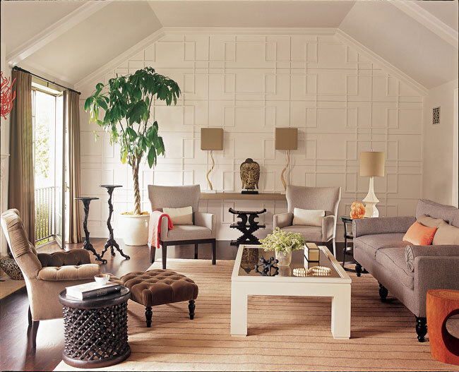 Задрапируйте одну или несколько стен тканью. Выбор драпировочных тканей поистине безграничен, и такая отделка украсит любое помещение и подчеркнёт его характер. Например, хлопчатобумажная или шерстяная ткань в шотландскую клетку отлично подойдёт для библиотеки, холст – для неформальной гостиной, атлас – для романтической спальни, а ситец – для комнаты маленькой девочки.
