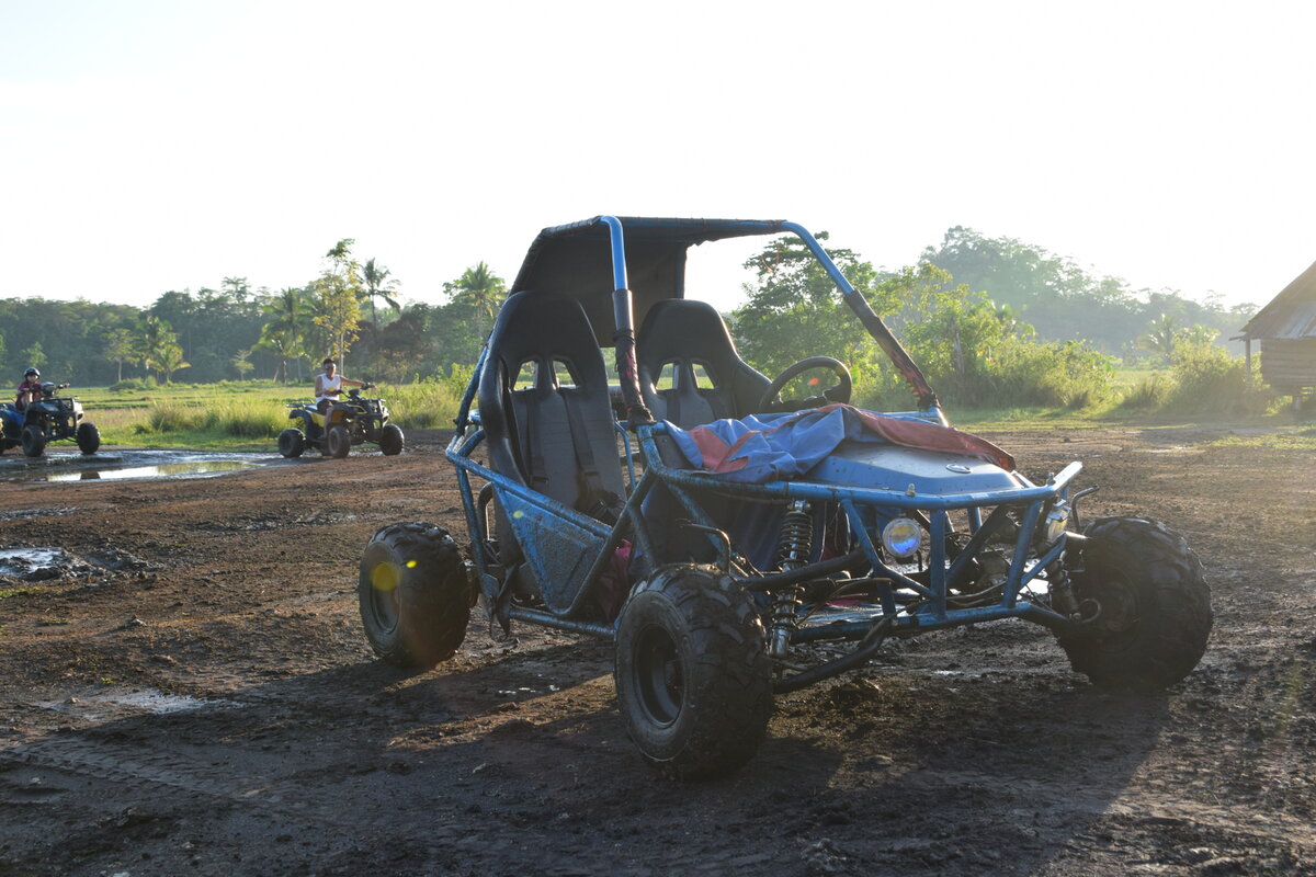 Экскурсию по Бохолу брали индивидуальную, выбрали места для осмотра и нас возят, думала мы едем на смотровую площадку, пофоткать Шоколадные Холмы - памятник природы занесенный в всемирный фонд наследия ЮНЕСКО - организация специализирующая на многом и проблемах геологии. Проблема с холмами в том что никто не знает как они образовались, ну и опять есть они тока тут, поэтому надо посмотреть. Это около 50 квадратных километров с от 1260 до 1776 (цифры с википедии) аккуратных, покрытых травой конусообразных холмов, в жаркий сезон трава выгорает до коричневого цвета и они походят на гигантские трюфели, от сюда и название. В десятках прочитанных отзывов про достопримечательности и развлечения на Бохоле нигде не было про целый парк квадроциклов, багги, байков и черт знает на чем там еще катаются по уши в грязи меж холмов. Спасибо водителю, привез, покатались. Знала бы что нам предстоит взяла бы с собой сменную одежду и обувь, а сверху дождевик с капюшоном, горнолыжные очки и балаклаву. Вообще