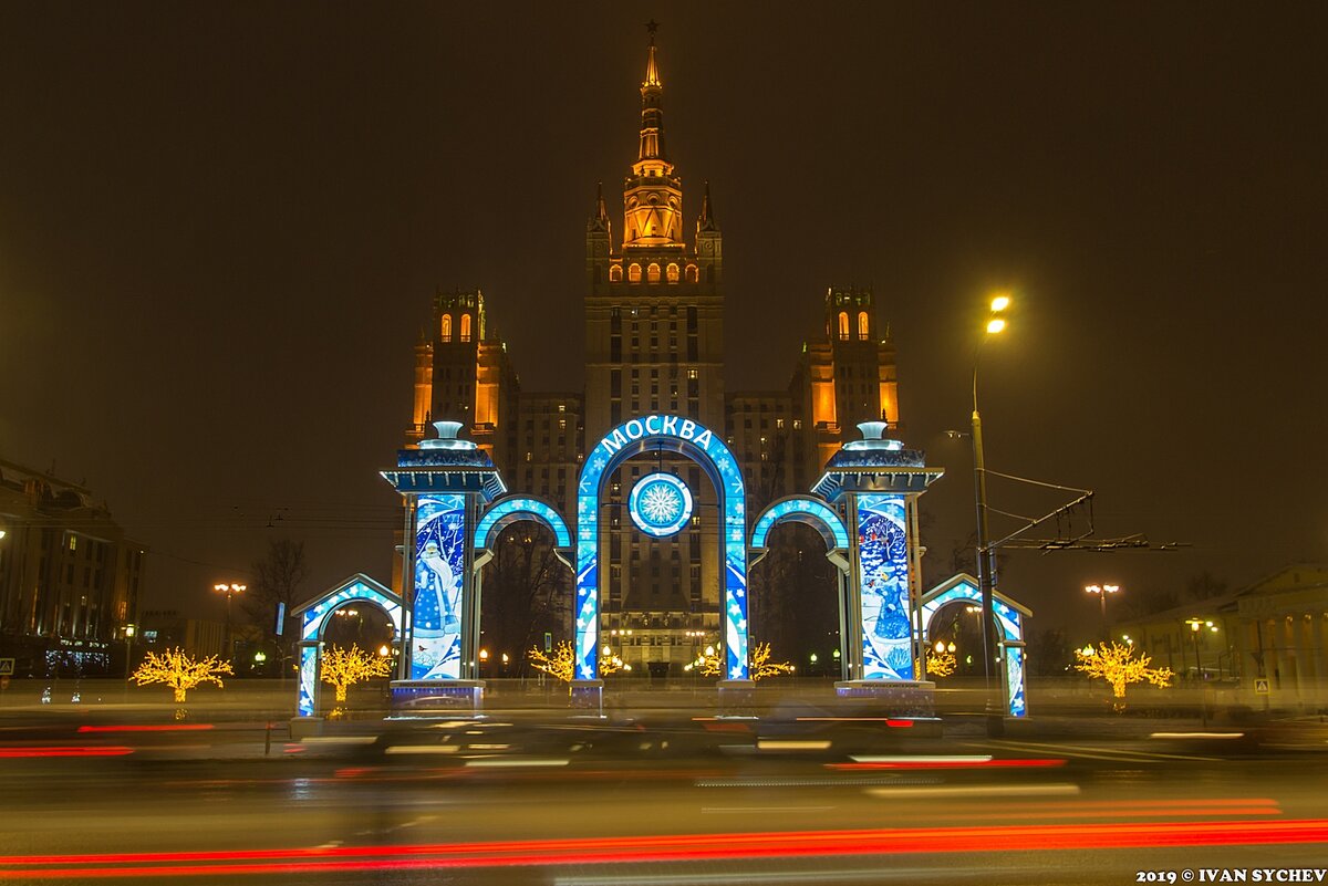 1. Высотка на Кудринской площади в январе только наступившего 2019 года. Это та высотка, к которой выходит метро "Баррикадная" и расположенная недалеко от зоопарка, правда снятая ровно с противоположной стороны от него.