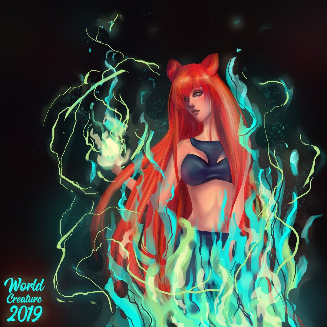 Art work. 🔥 How to draw a fire?🔥 Redhead girl. Photoshop Speedpaint. Как нарисовать огонь