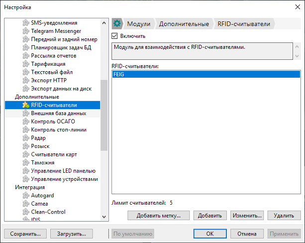 Добавлен модуль «RFID-считыватели»