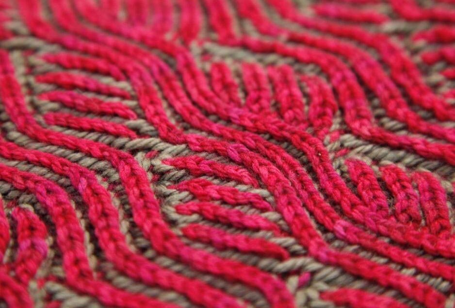 Доброго времени суток, уважаемые читатели! Спасибо, что сегодня добрались сюда. Надо отметить, что такая техника подойдет для различных вязаных вещей: снуды, шапки , кардиганы, митенки, гетры и другие. Мне нравится, что такое вязание делает вещь интересной, можно использовать сразу 2 цвета. Кстати, учитываем то, что толщина вязаного изделия увеличивается в 2 раза, благодаря спущенным нитям! Чем не идея для шарфика на осень и зиму?)) Полотно хорошо растягивается и облегает. Эта техника основана на вязании английской резинки. Изюминка в том, что вязать ее можно, образуя нескучные, причудливые узоры. Узоры, которые напоминают листики, рыбью чешую или вытянутые арки)) Мало ли что еще нарисует нам воображение. Источник фото из статьи: Яндекс.Картинки Если вы хотите попробовать связать себе что - то в такой интересной технике, но еще не умеете, я оставляю вам эту ссылку синим цветом, жмите на нее и там будет полезная информация. Так же я делюсь с вами ссылкой на вязание "Пламенеющего" ша