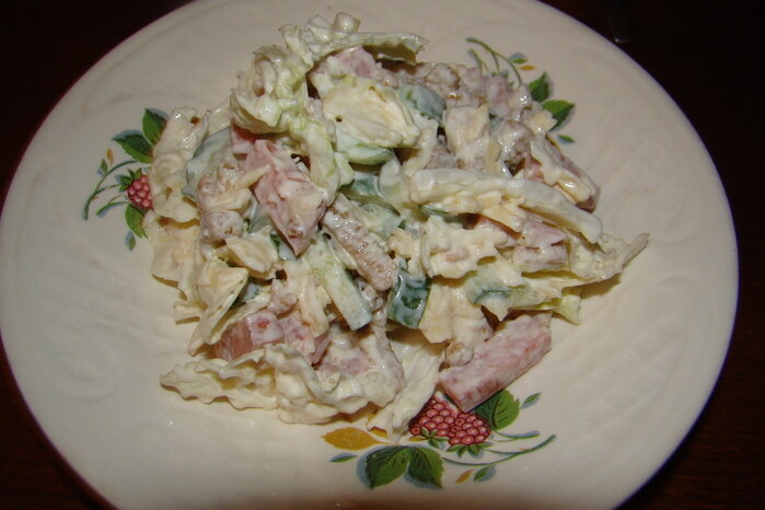 Салат , который явно придется по душе любителям быстро и сытно перекусить . Для приготовления нам понадобятся: Готовится салат очень легко. Колбасу нарезаем небольшими кубиками. Помидор и огурец также режте некрупными кусками, а сыр натрите на крупной терке. Смешивайте все ингредиенты, добавьте сухарики и заправьте салат майонезом. Дайте готовому салату немного настояться. Приятного аппетита))))