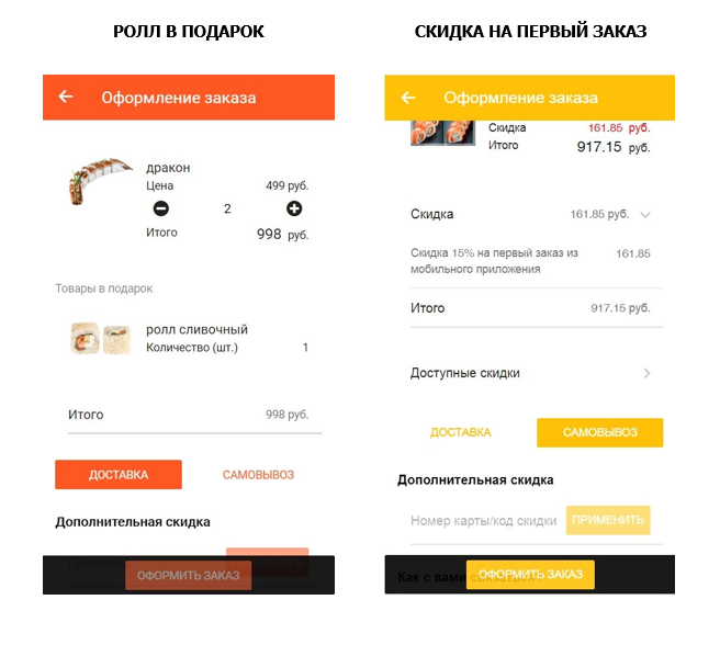 1. Производите настройку мотивирующих скидок и акций в мобильном приложении. Чтобы при последующем продвижении ваши клиенты, скачав приложение, сразу при оформлении заказа получали подарки, скидки.