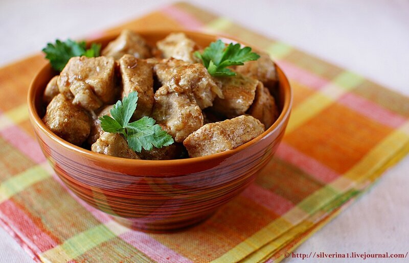Затем добавить измельчённый бородинский хлеб и тушить еще 20 минут. Количество хлеба подбирайте по своему вкусу, в зависимости от того, какой густоты соус вам нужен. Приправить солью и чёрным перцем по вкусу. Подавать с гарниром. Очень вкусно с картофельным пюре.