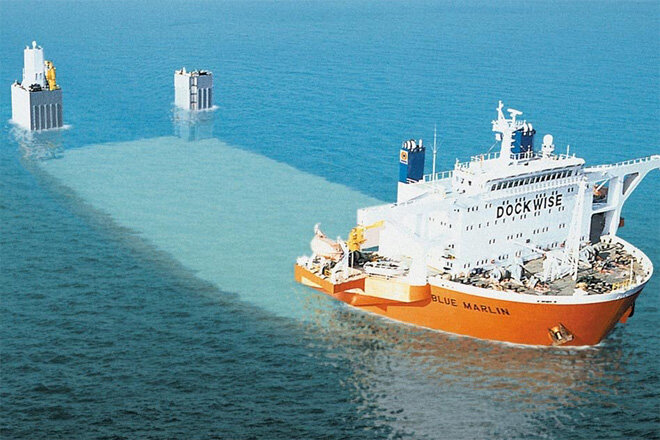 Голубой Марлин: величайший корабль, Большинство из вас понятия не имеет, какими невероятными машинами пользуется человечество. Новости о ракетах проходят мимо нас, поскольку уж очень далеки от повседневности. А как насчет кораблей? Тяжеловесное судно Blue Marlin («Голубой Марлин») — голландский полупогружаемый грузовой корабль. Сауна, тренажерный зал, бассейн и возможность перевозить такие громоздкие штуки, как эсминцы и даже буровые платформы! Первые корабли серии Marlin были заложены еще в 2001 году. В 2003 судно прошло серьезную модернизацию и теперь умеет поднимать еще большие веса. Источник ➝