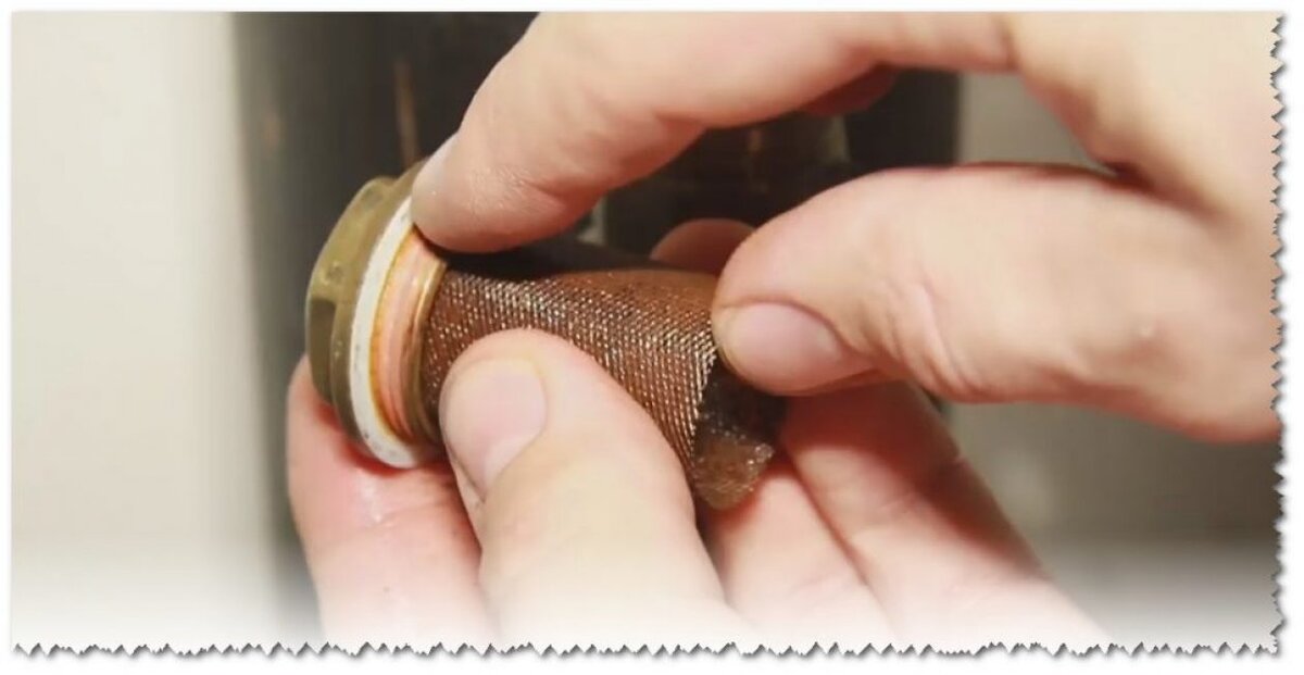 Сетчатый фильтр рекомендуется периодически промывать. Это сделать не сложно, нужно только открутить гайку, достать фильтр и его промыть.