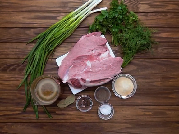 Террины - достаточно популярное в мире блюдо. В зависимости от традиций его готовят из мясного фарша или рубленной рыбы. По желанию добавляются овощи, орехи, пряности и сливки. Сверху террин заливается желейной "рубашкой" или аспиком. Террины бывают и сладкими, состоящими из ягод, фруктов, сливок, йогурта. Ингредиенты Список ингредиентов: Приготовление Первое, с чего начинаем - приготовление бульона и говядины. Мясо выкладываю в кастрюлю, заливаю холодной водой. Довожу до кипения, уменьшаю огонь, добавляю лавровый лист и душистый перец, оставляю вариться на 2,5 часа. Желатин высыпаю в небольшую емкость, заливаю холодной кипяченой водой и оставляю набухать на 15-20 минут. Готовое мясо вынимаю из бульона. В бульон по вкусу добавляю соль и перец, выкладываю набухший желатин и, помешивая, дожидаюсь его полного растворения. Следите за тем, чтобы бульон с желатином не закипел. Мясу даю немного остыть и нарезаю кубиками среднего размера. Мелко нарезаю зеленый лук и зелень, предварит