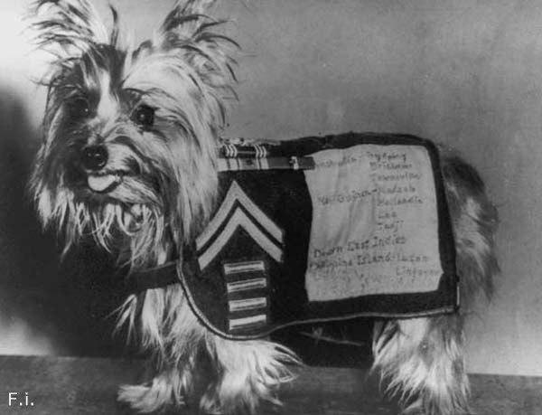 1. В 1944 году, собачка Smoky была найдена американскими солдатами в джунглях Новой Гвинеи, в заброшенной лисьей норе. На вид ей было примерно год. У солдат за 2 Австралийских фунта собаку купил капрал Вильям Уинни из Кливленда. В течение следующих двух лет войны, Smoky везде сопровождала своего хозяина, перенося все лишения и тяготы военной службы. Собаку зачислили в состав 26-го разведывательного авиаполка 5-й Армии ВВС США. Она пережила 150 воздушных налётов на Новой Гвинее, и тайфун на Окинаве. Smoky прыгала с парашютом с 30-футовой баши, была рядом с зенитными расчётами во время боя, совершила 12 боевых вылетов, за что получила 8 боевых звёзд и заслужила звание капрала. В течение последующих 10 лет, Smoky и Уинн ездили в Голливуд, где демонстрировали ее замечательные навыки, она могла сложить своё имя, различая буквы, могла ходить по проволоке с завязанными глазами. 11 ноября 2005 года был открыт мемориал Smoky . В бронзе в натуральную величину скульптура Smoky сидящей в солдатско